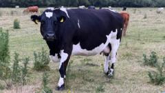 The man was stuck in the tree for more than an hour after fleeing from the cow.